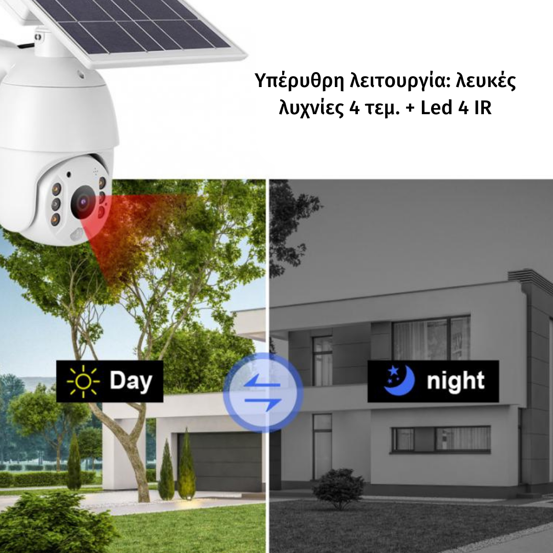 Περιστρεφόμενη Αδιάβροχη αυτόνομη Κάμερα Παρακολούθησης Με Φωτοβολταϊκό